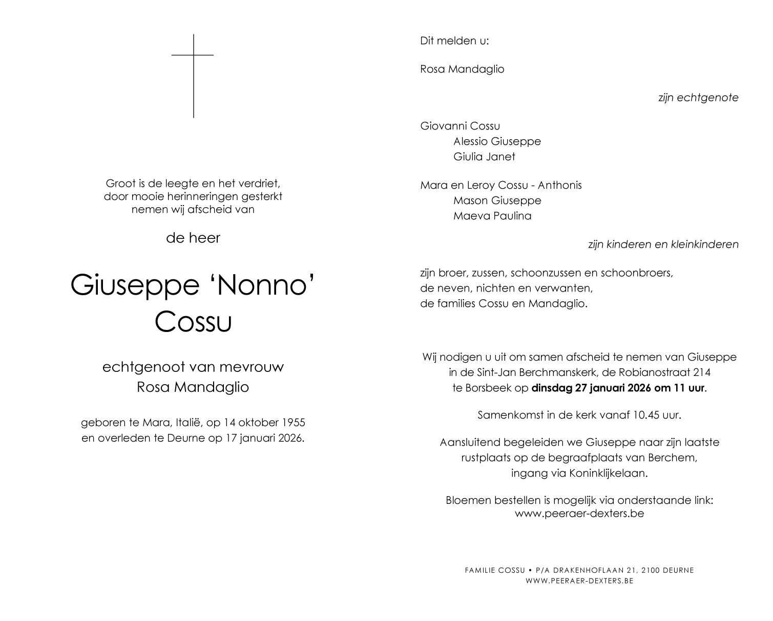 Overleden te Deurne (Antwerpen) (2100, België) op zaterdag 17 januari 2026 op 70-jarige leeftijd