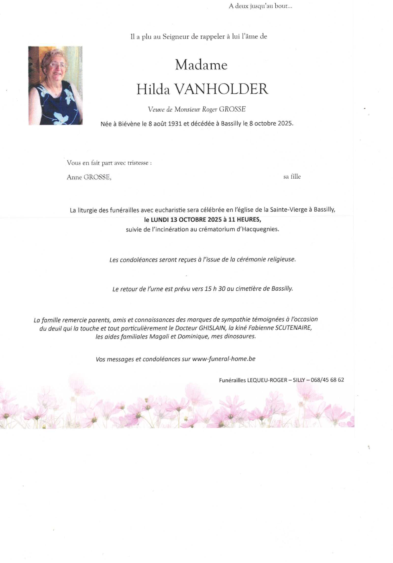 Died in Bassilly (7830, Belgium) on 08 October 2025 at the age of 94 years