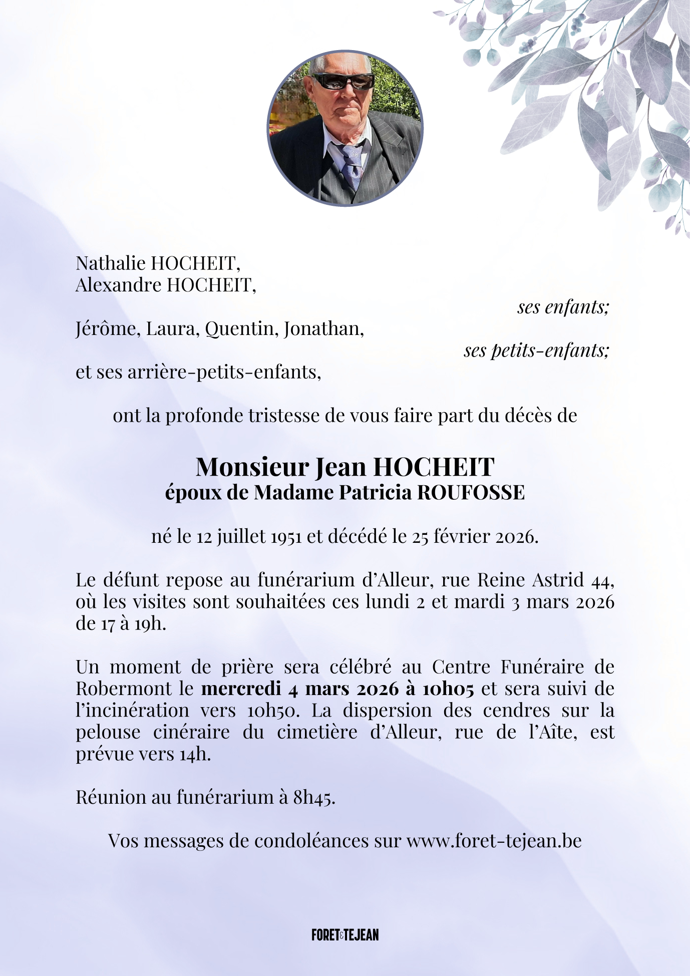 Died in Liège (4000, Belgium) on 25 February 2026 at the age of 74 years