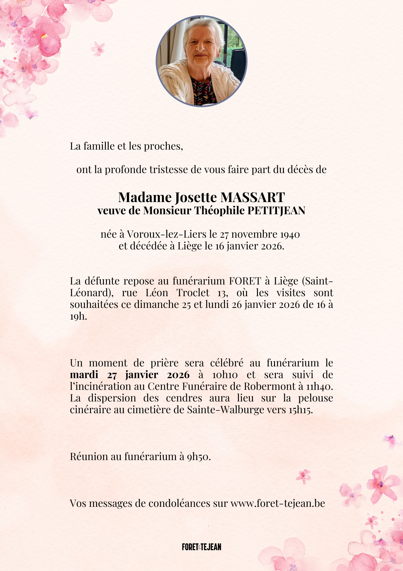Overleden te Liège (4000, België) op vrijdag 16 januari 2026 op 85-jarige leeftijd