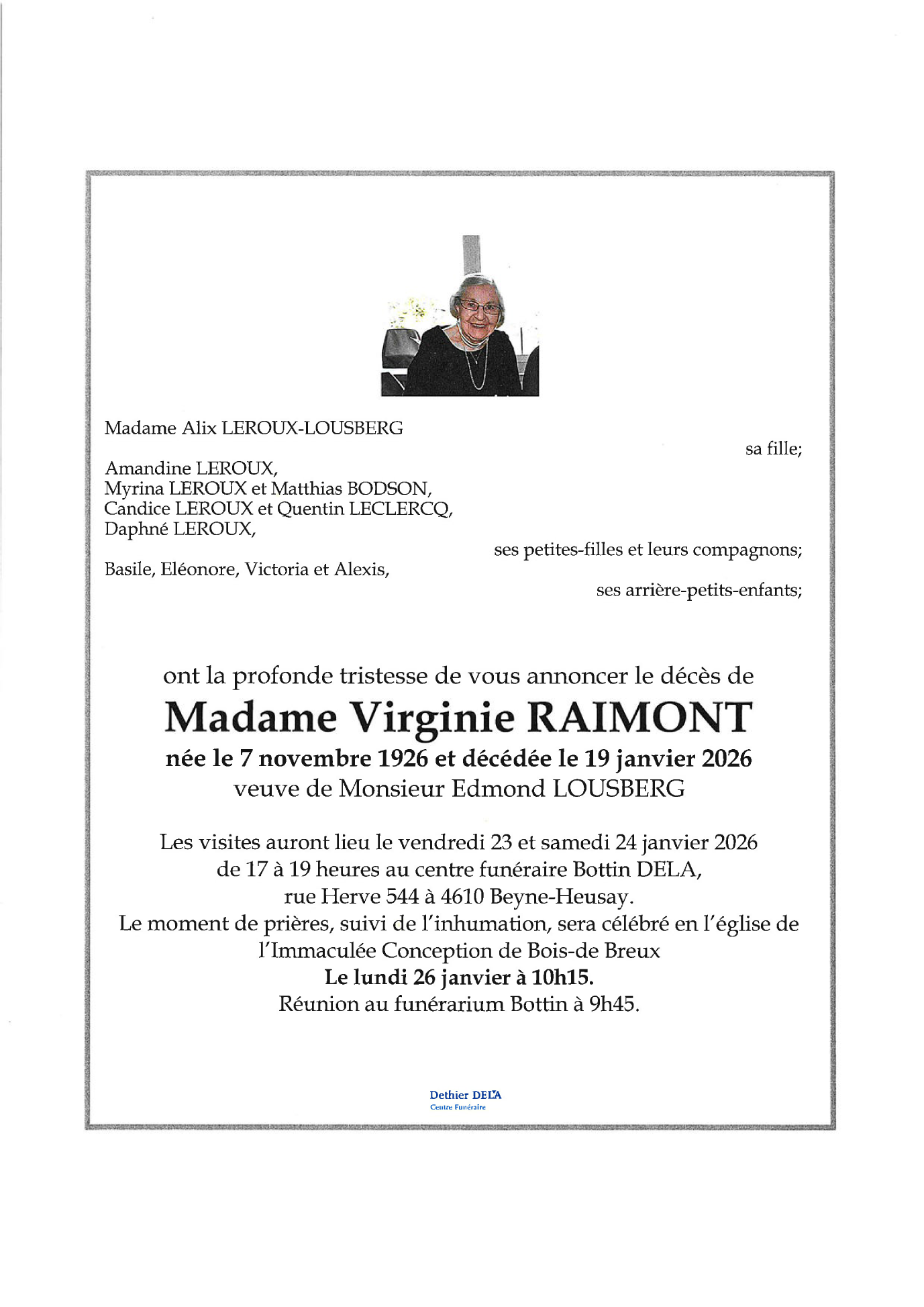 Overleden te Chênée (4032, België) op maandag 19 januari 2026 op 99-jarige leeftijd