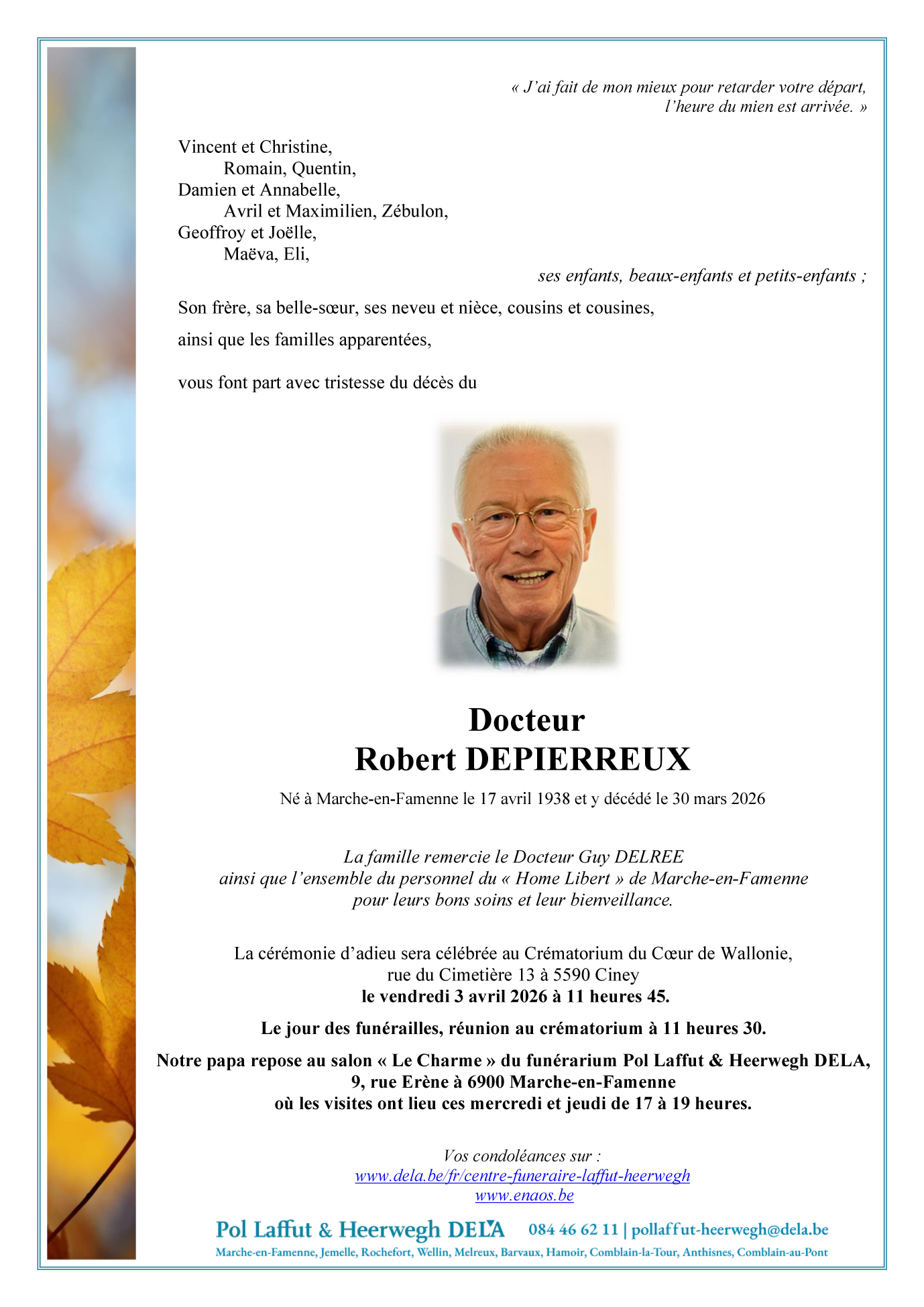 Fallecido en Marche-en-Famenne (6900, Bélgica) el lunes, 30 de marzo de 2026 a la edad de 87 años