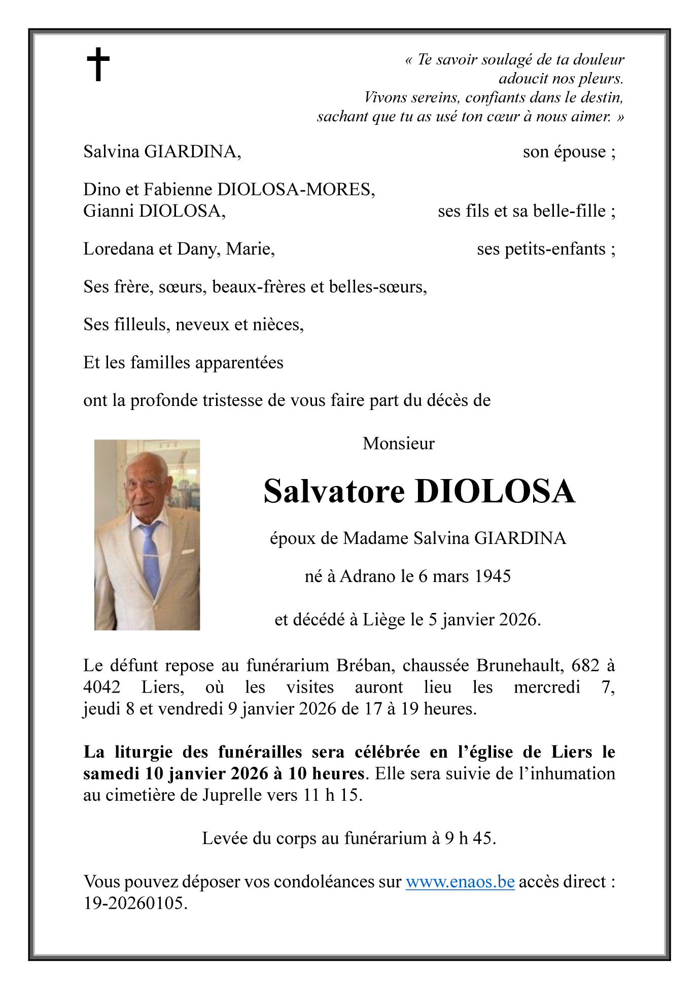 Monsieur Salvatore DIOLOSA époux de Salvina GIARDINA