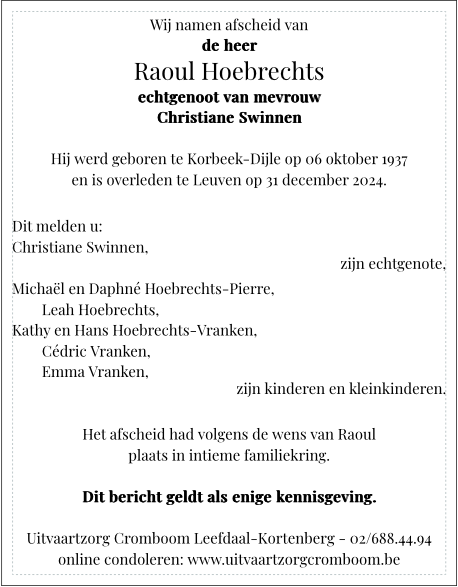 Fallecido en Leuven (3000, Bélgica) el martes, 31 de diciembre de 2024 a la edad de 87 años
