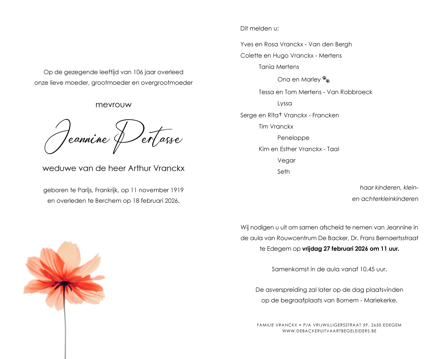 Died in Antwerpen (2020, Belgium) on 18 February 2026 at the age of 106 years