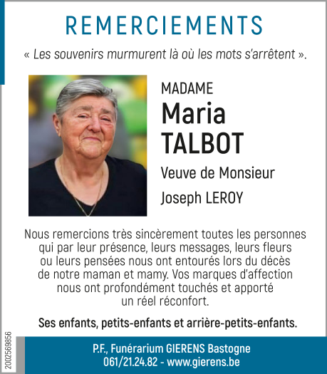 Overleden te Bastogne (6600, België) op maandag 19 januari 2026 op 84-jarige leeftijd