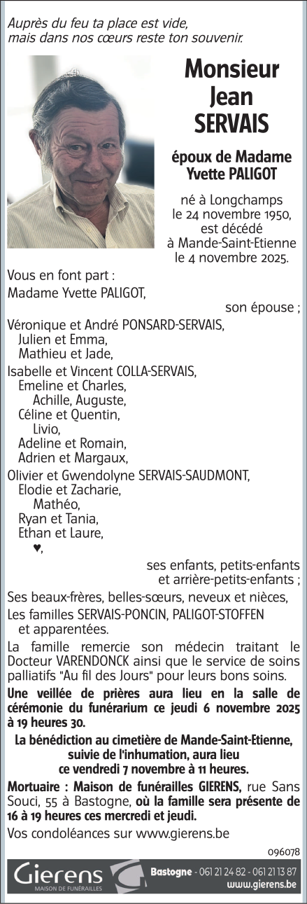Overleden te Bertogne (6687, België) op dinsdag 4 november 2025 op 74-jarige leeftijd