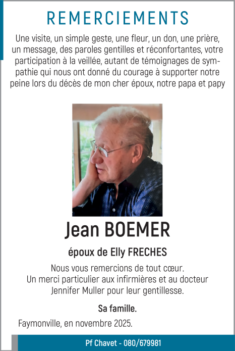 Overleden te Faymonville (4950, België) op zondag 16 november 2025 op 88-jarige leeftijd