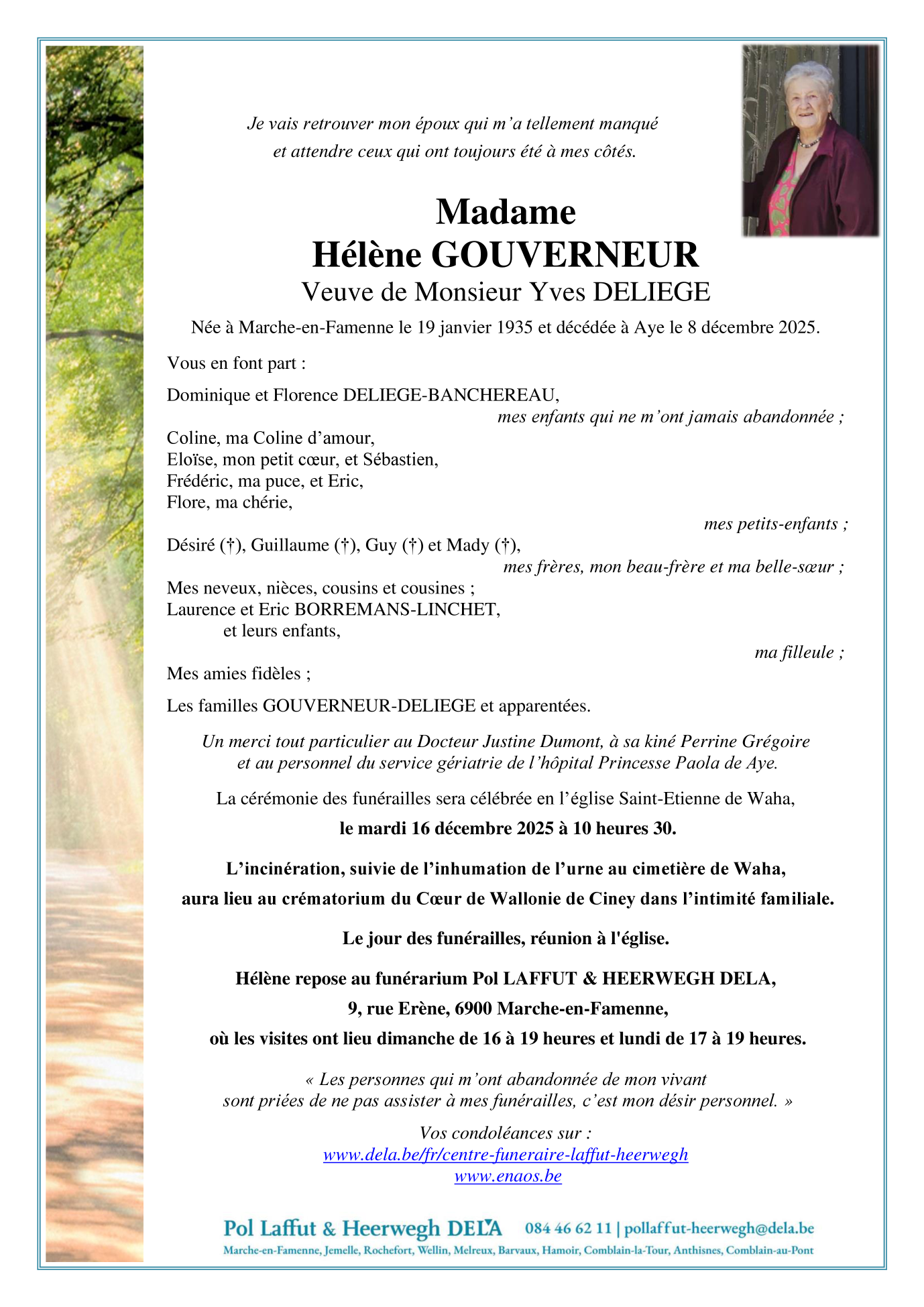 Fallecida en Aye (6900, Bélgica) el lunes, 8 de diciembre de 2025 a la edad de 90 años