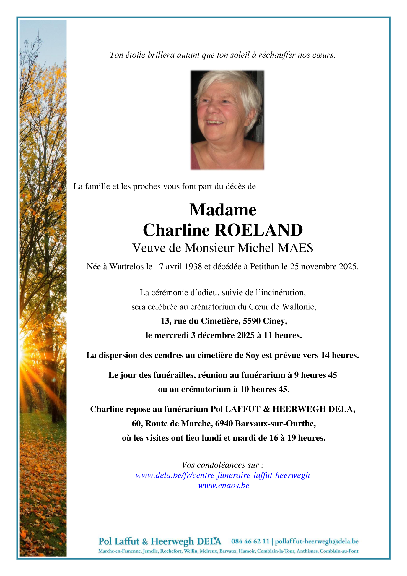 Fallecida en Petit-Han (6940, Bélgica) el martes, 25 de noviembre de 2025 a la edad de 87 años