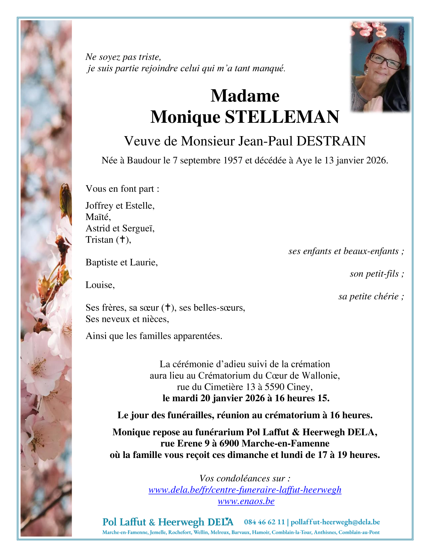 Fallecida en Marche-en-Famenne (6900, Bélgica) el martes, 13 de enero de 2026 a la edad de 68 años
