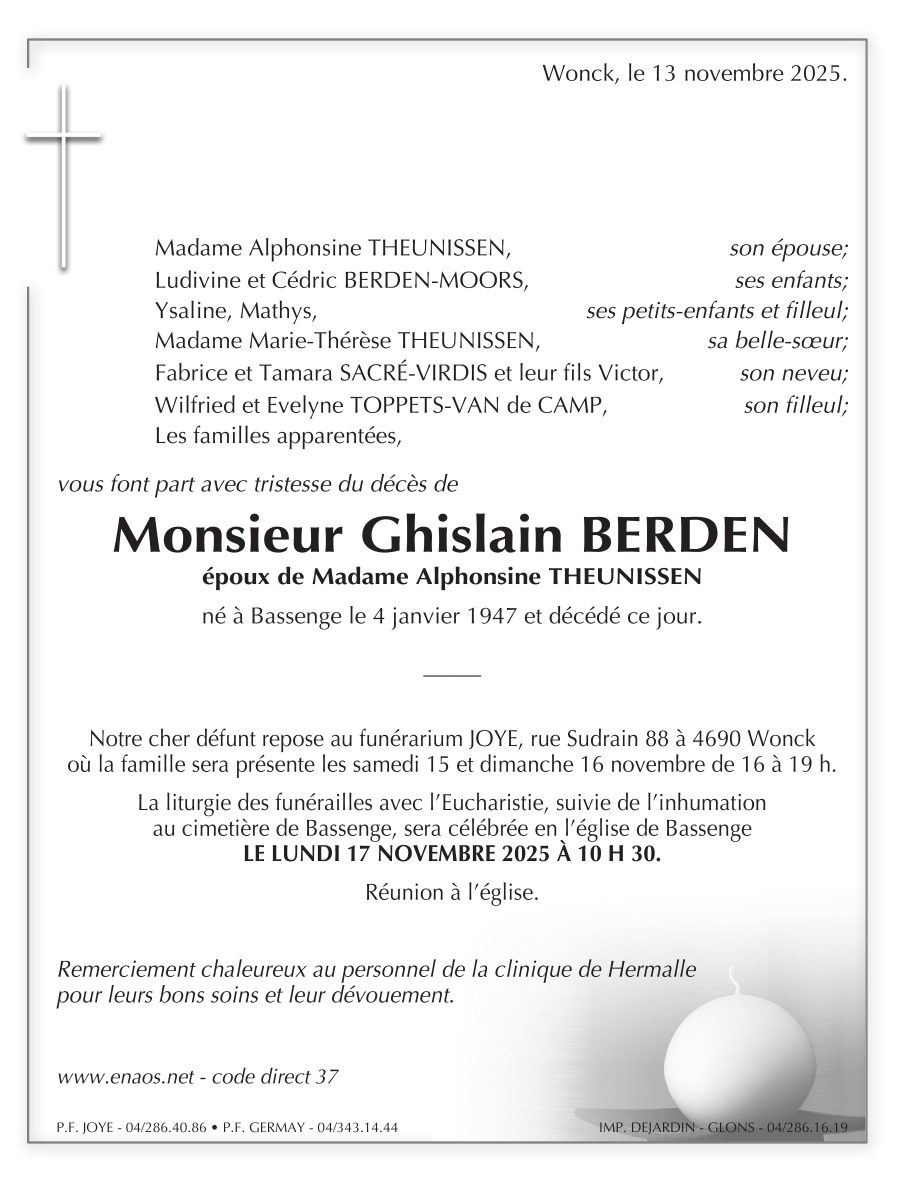Fallecida en Hermalle-sous-Argenteau (4681, Bélgica) el jueves, 13 de noviembre de 2025 a la edad de 78 años