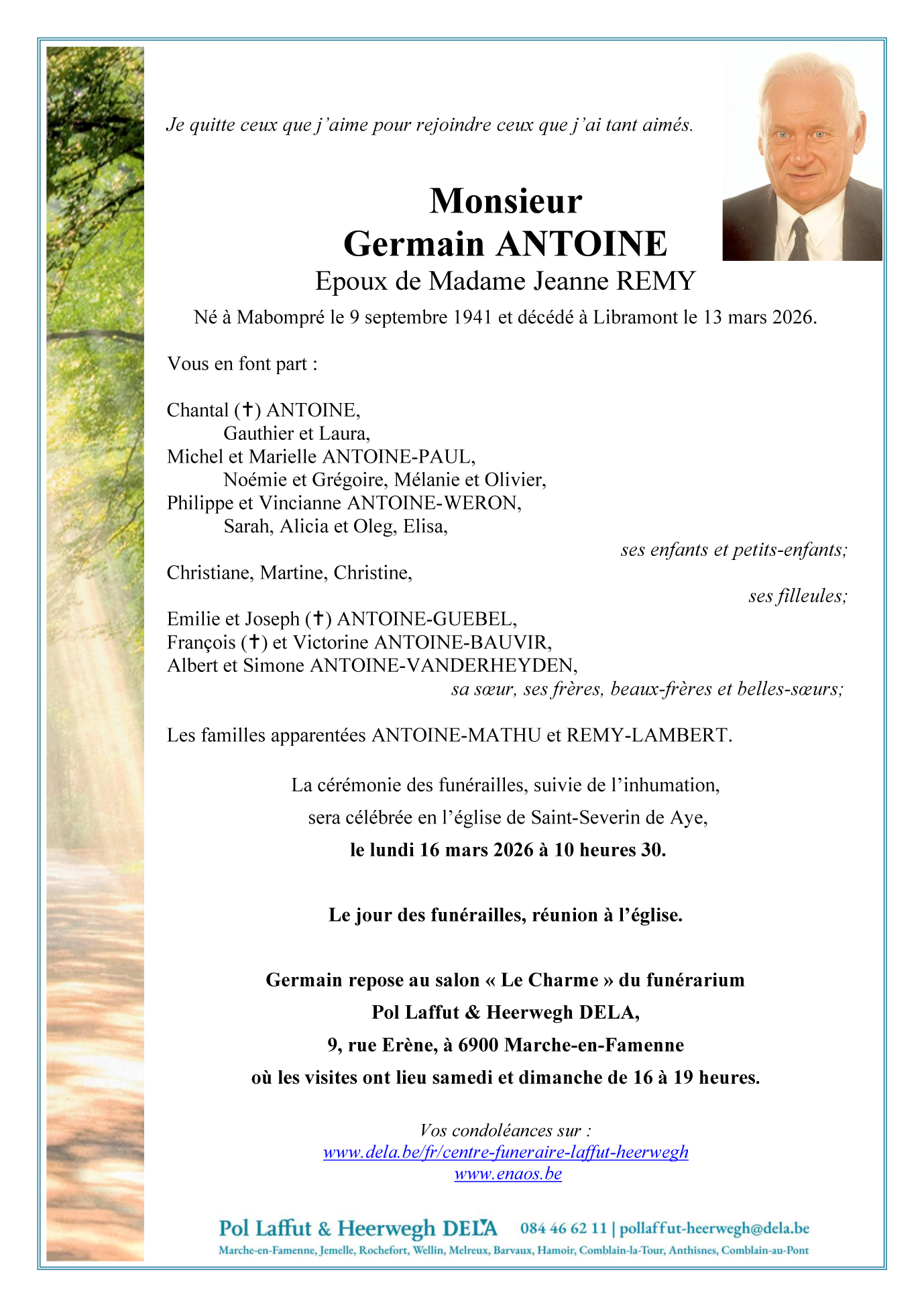 Fallecido en Libramont (6800, Bélgica) el viernes, 13 de marzo de 2026 a la edad de 84 años
