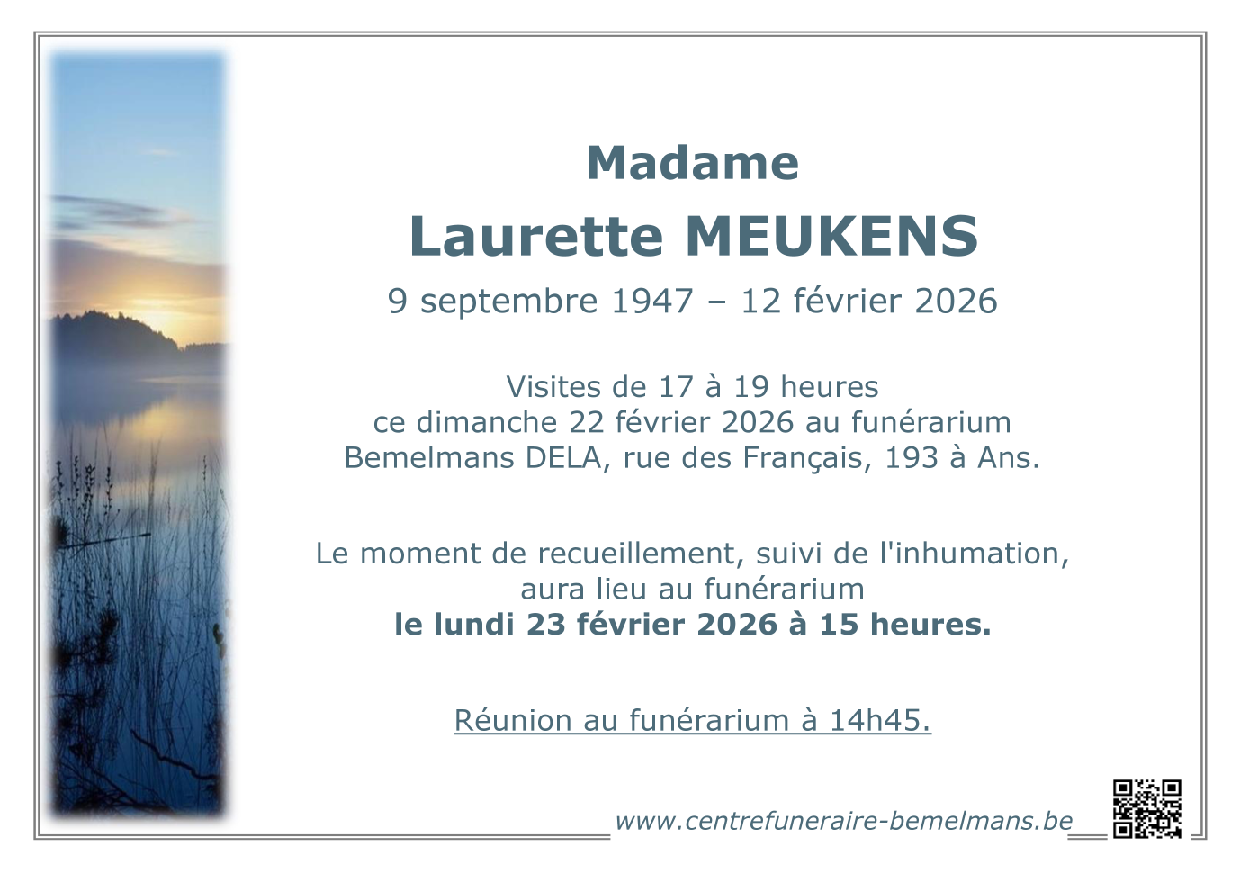 Fallecida en Liège (4000, Bélgica) el jueves, 12 de febrero de 2026 a la edad de 78 años