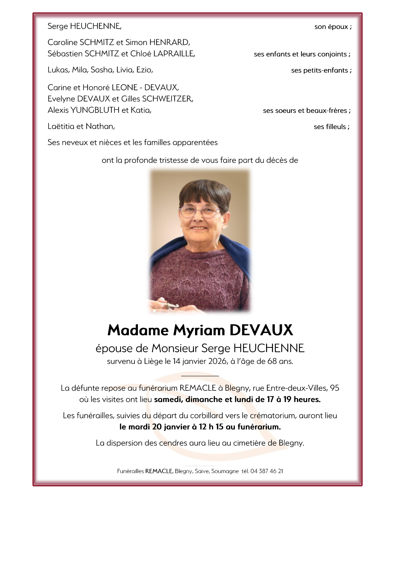 Overleden te Liège (4000, België) op woensdag 14 januari 2026 op 68-jarige leeftijd
