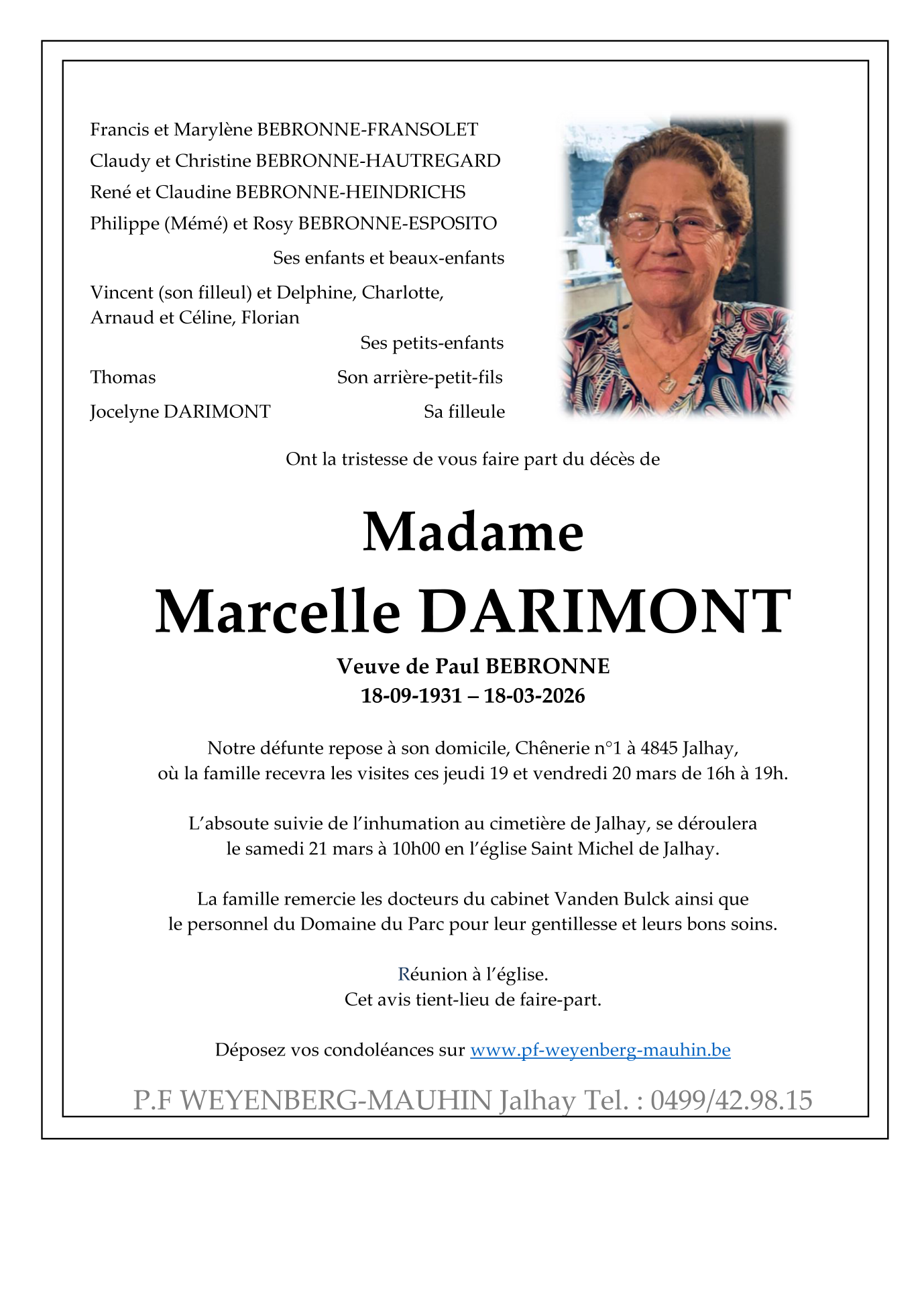 Overleden te Verviers (4800, België) op woensdag 18 maart 2026 op 94-jarige leeftijd