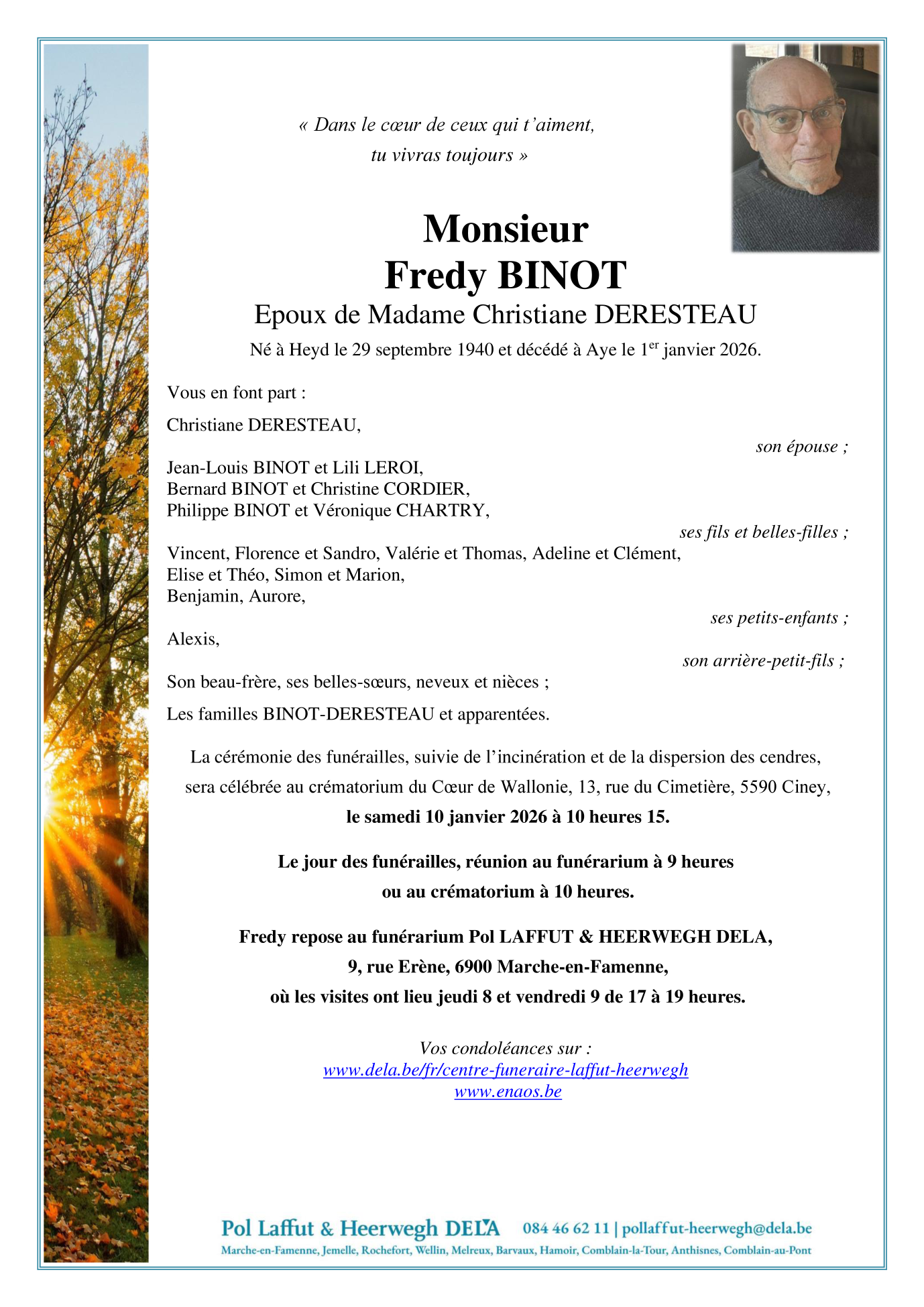 Fallecido en Aye (6900, Bélgica) el jueves, 1 de enero de 2026 a la edad de 85 años