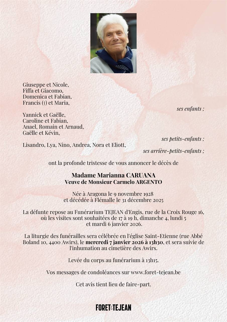Fallecida en Flémalle (4400, Bélgica) el miércoles, 31 de diciembre de 2025 a la edad de 97 años