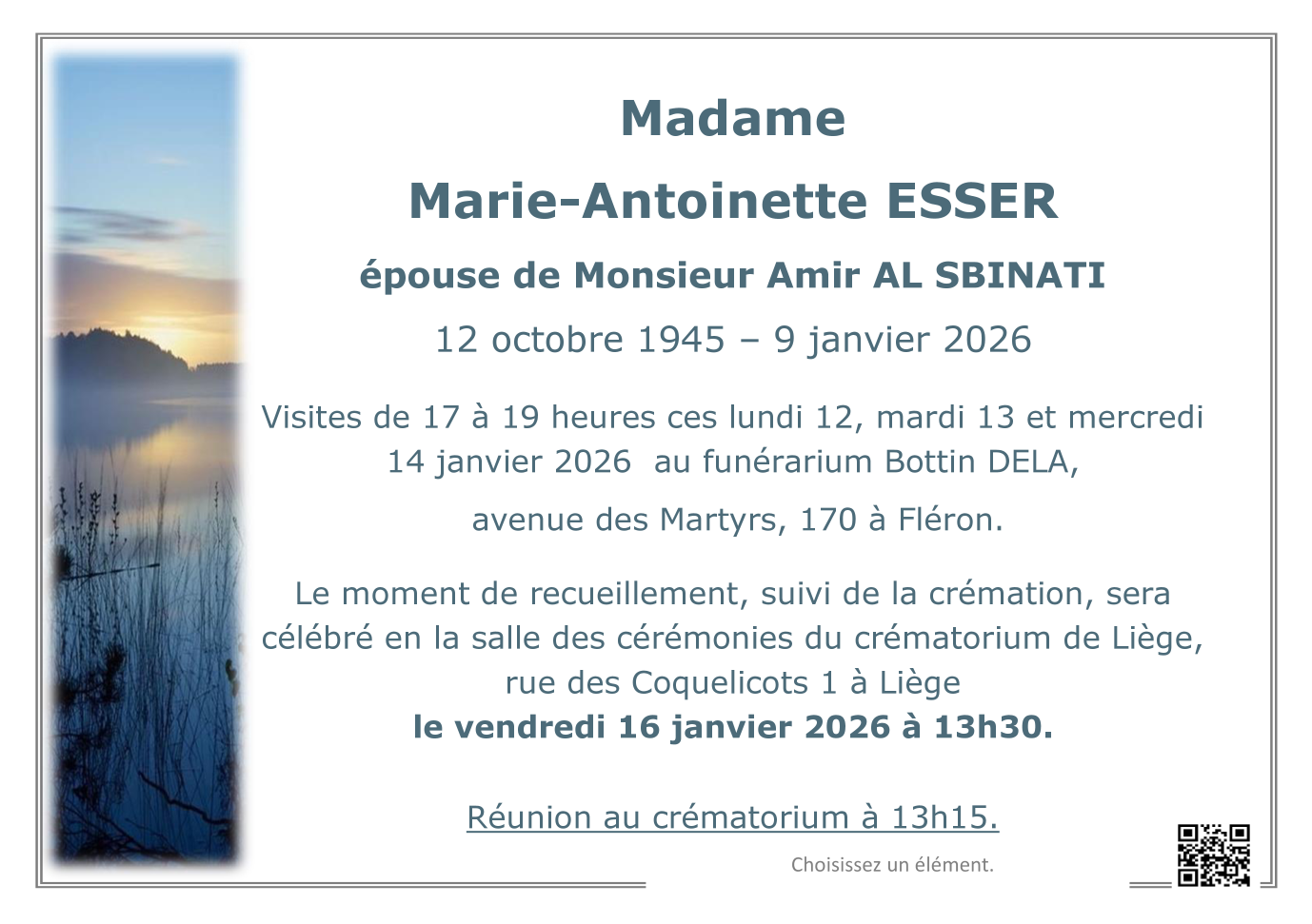 Fallecida en Liège (4000, Bélgica) el viernes, 9 de enero de 2026 a la edad de 80 años