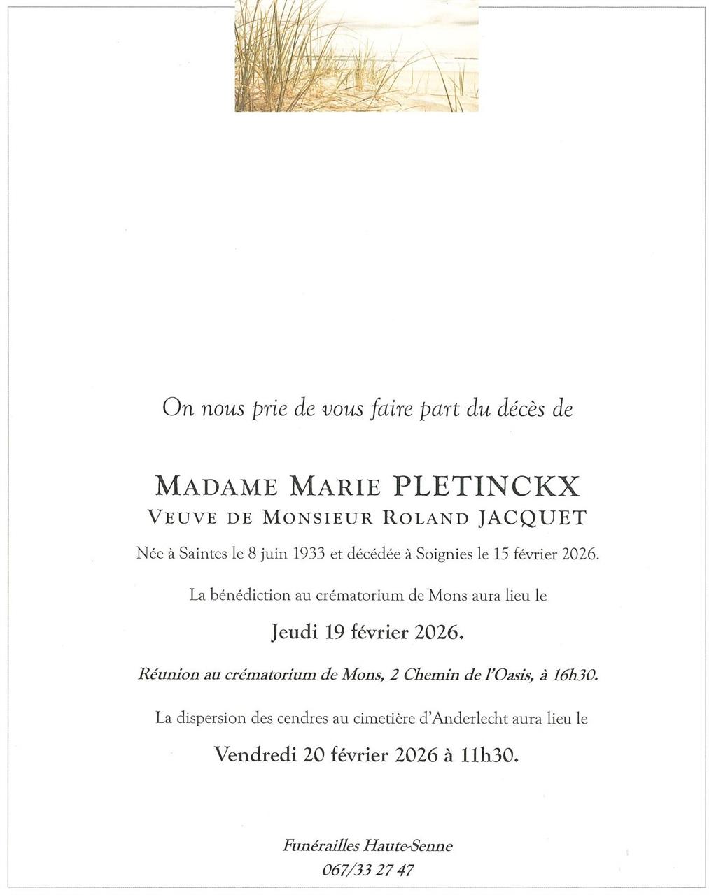 Fallecida en Soignies (7060, Bélgica) el domingo, 15 de febrero de 2026 a la edad de 92 años
