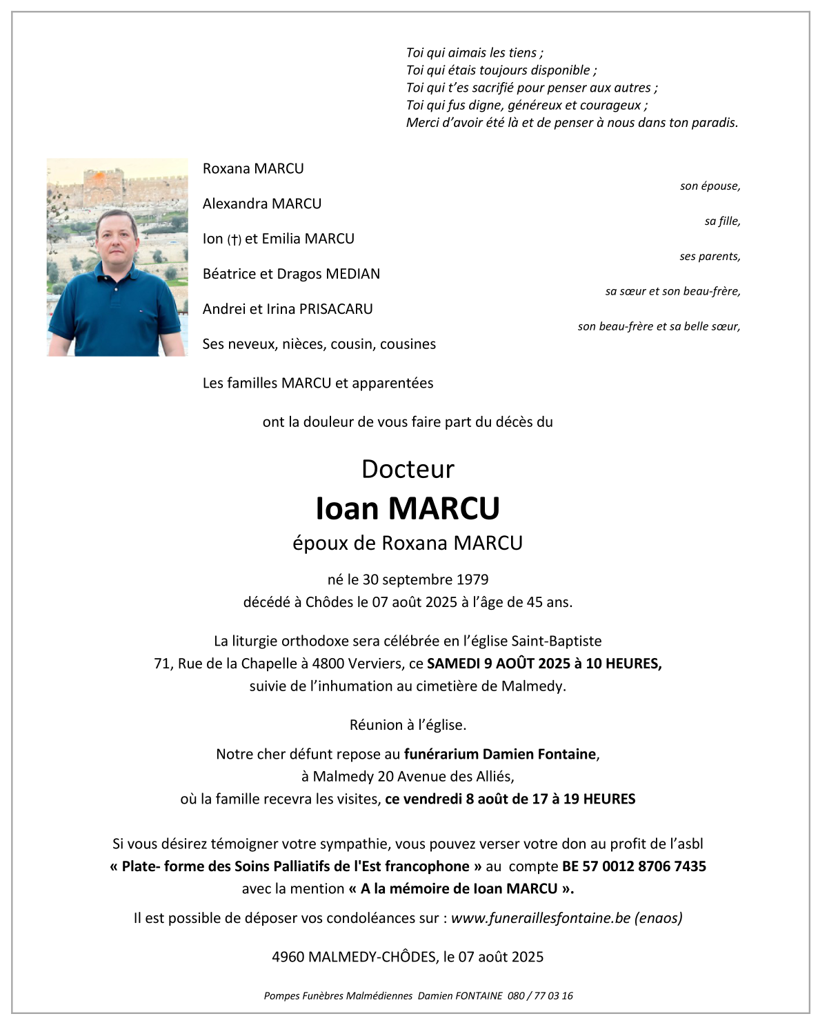 Fallecido en Chôdes (4960, Bélgica) el jueves, 7 de agosto de 2025 a la edad de 45 años