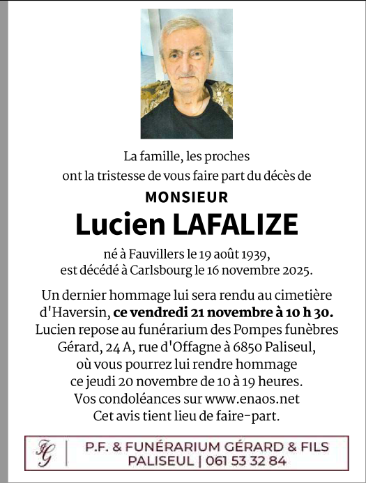 Décédé à Carlsbourg (6850, Belgique) le mercredi 19 novembre 2025 à l'âge de 86 ans