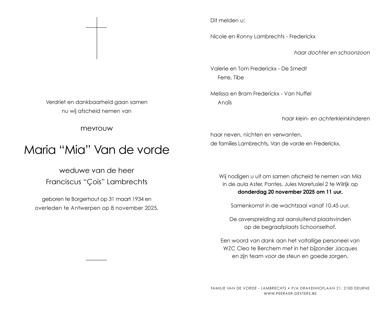 Fallecida en Antwerpen (2020, Bélgica) el sábado, 8 de noviembre de 2025 a la edad de 91 años