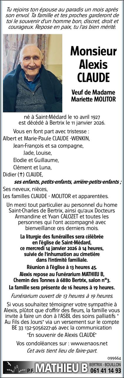 Décédé à Bertrix (6880, Belgique) le dimanche 11 janvier 2026 à l'âge de 98 ans