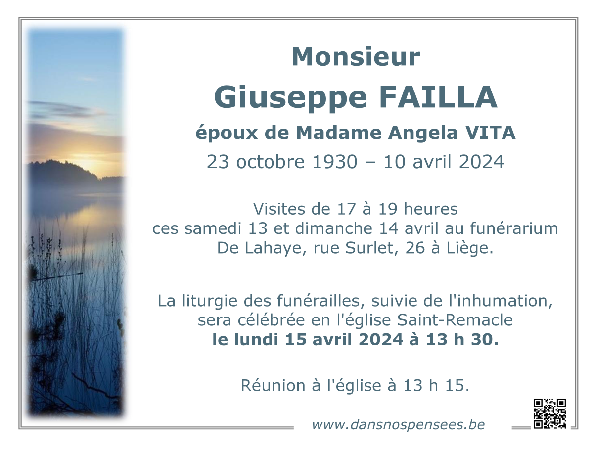 Overleden te Chênée (4032, België) op woensdag 10 april 2024 op 93-jarige leeftijd