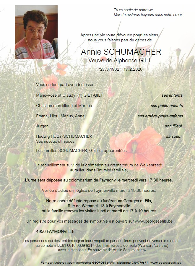 Madame Annie SCHUMACHER veuve de Alphonse GIET