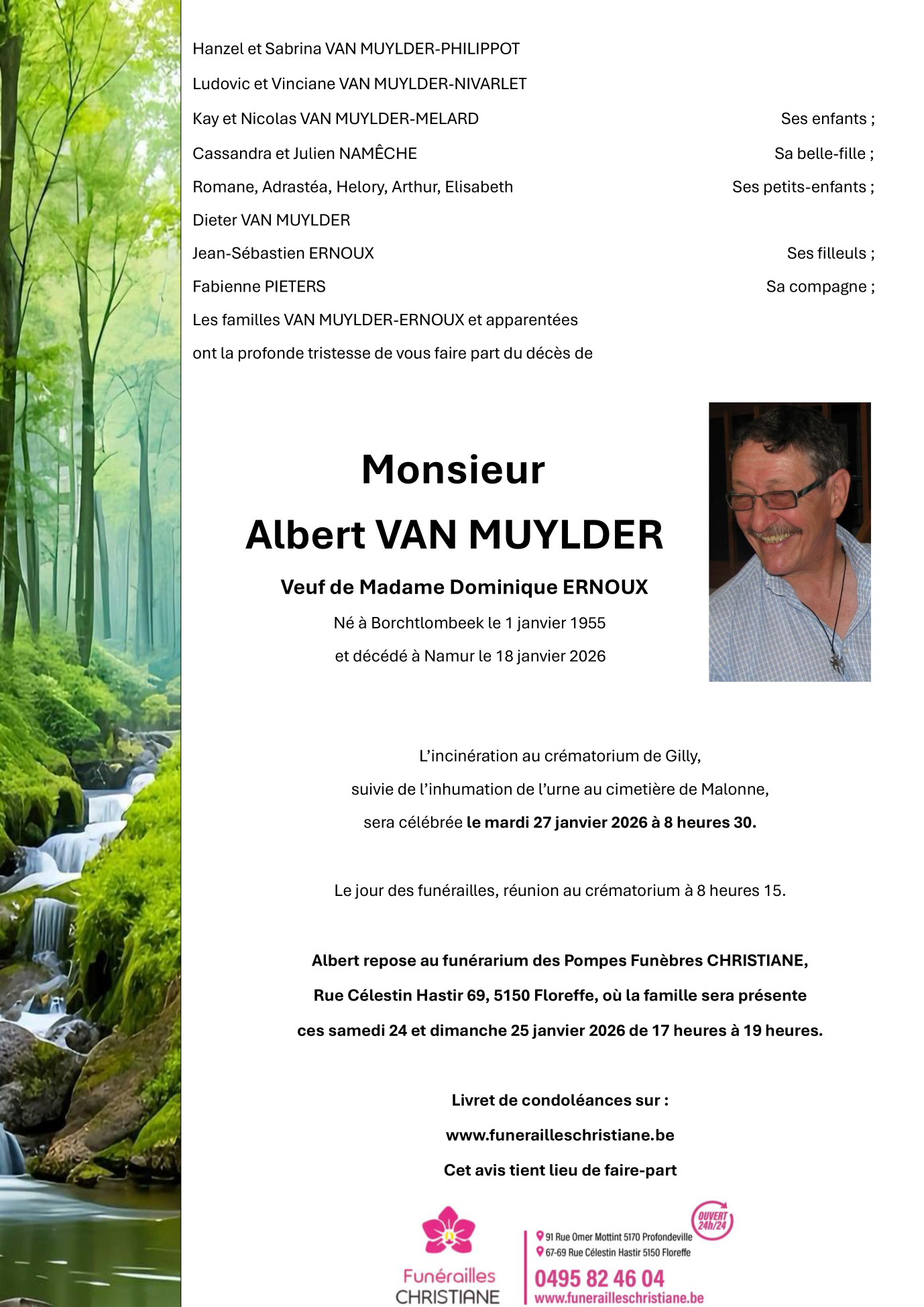 Décédé à Namur (5000, Belgique) le dimanche 18 janvier 2026 à l'âge de 71 ans