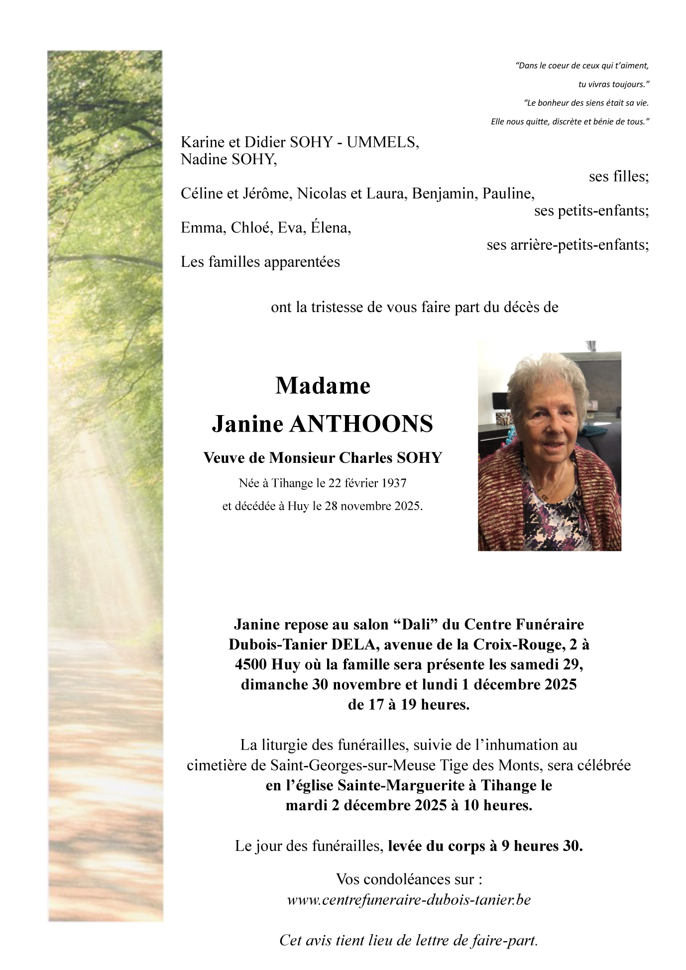 Fallecida en Huy (4500, Bélgica) el viernes, 28 de noviembre de 2025 a la edad de 88 años