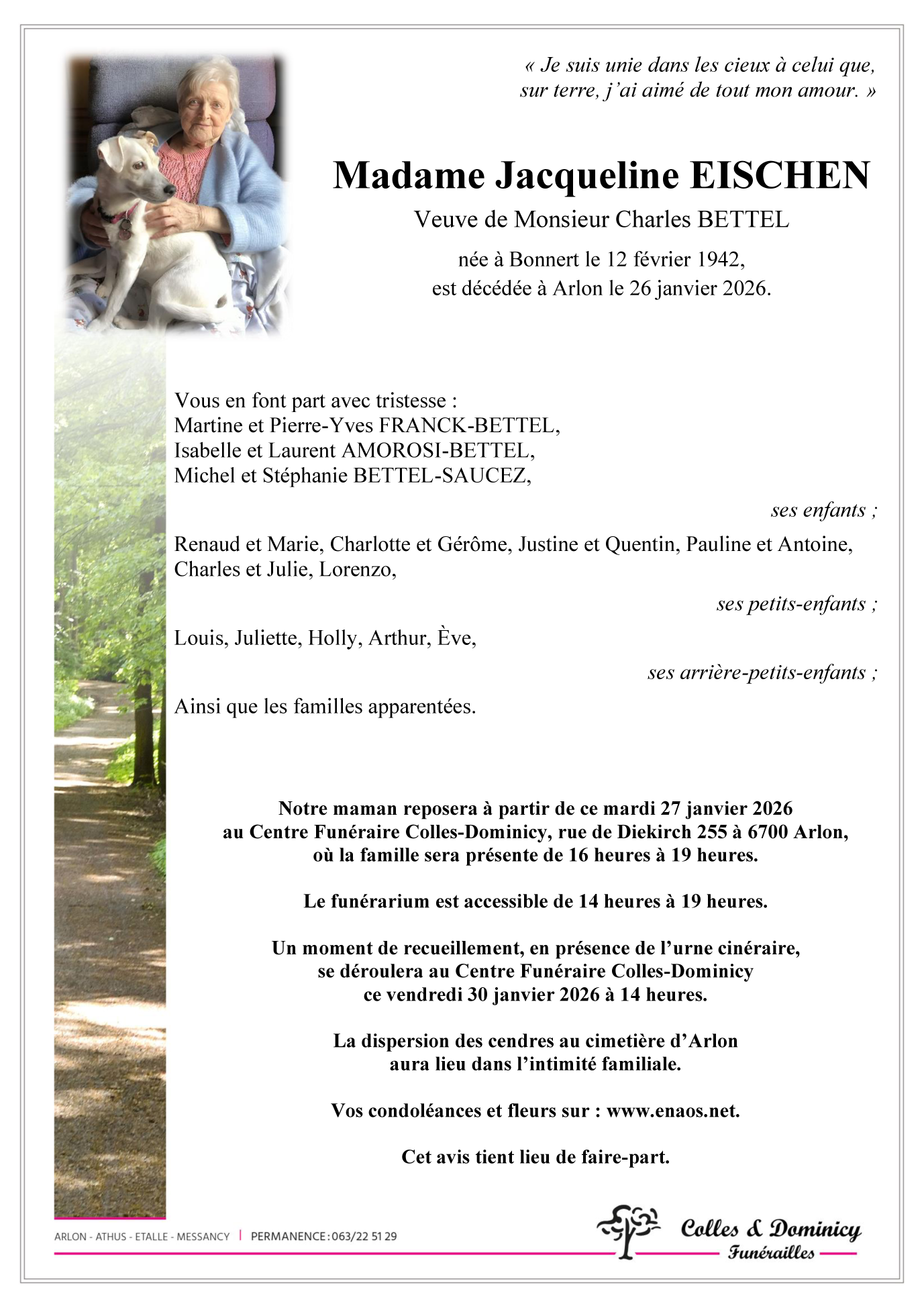 Died in Arlon (6700, Belgium) on 26 January 2026 at the age of 83 years
