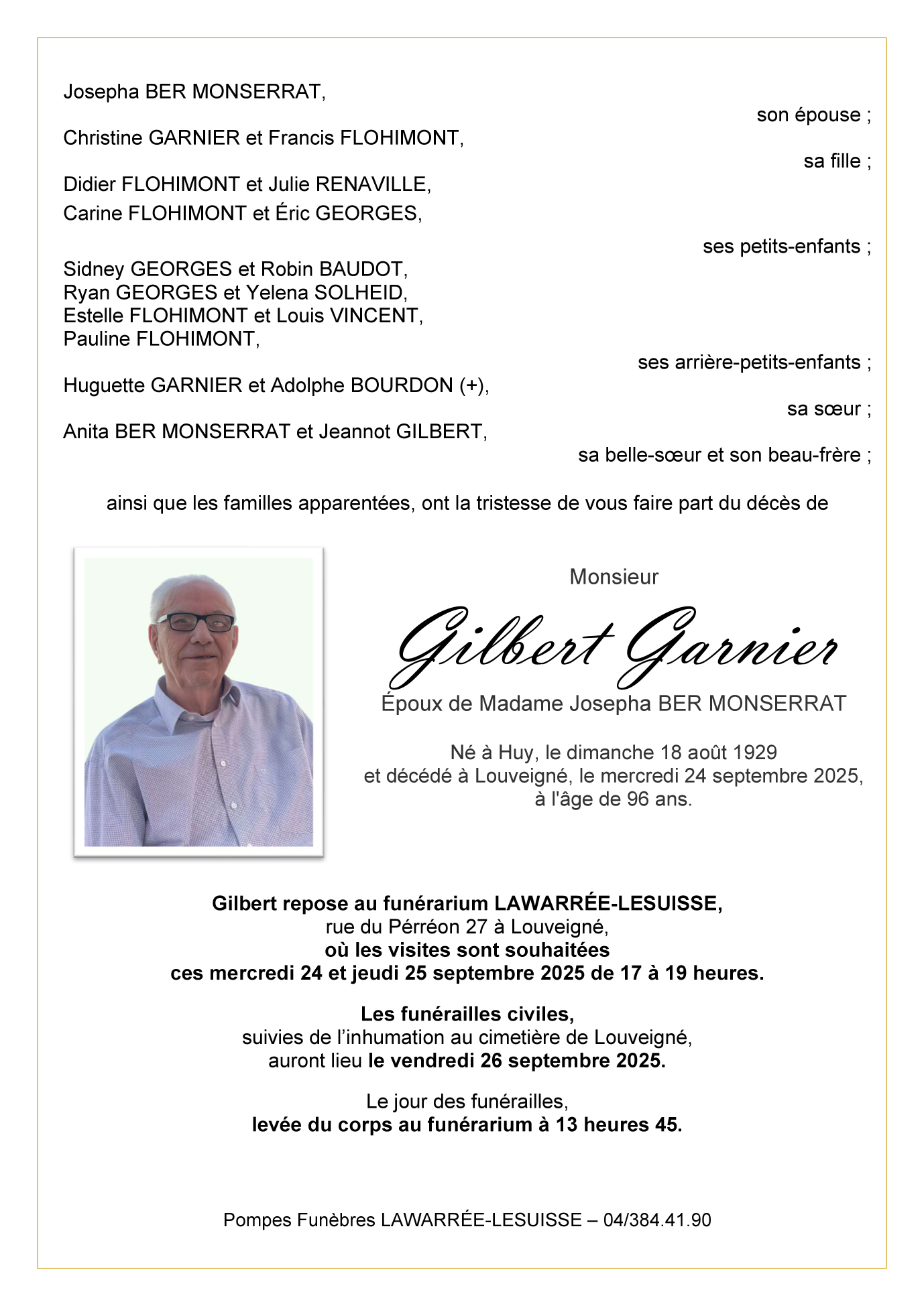 Fallecido en Louveigné (4141, Bélgica) el miércoles, 24 de septiembre de 2025 a la edad de 96 años