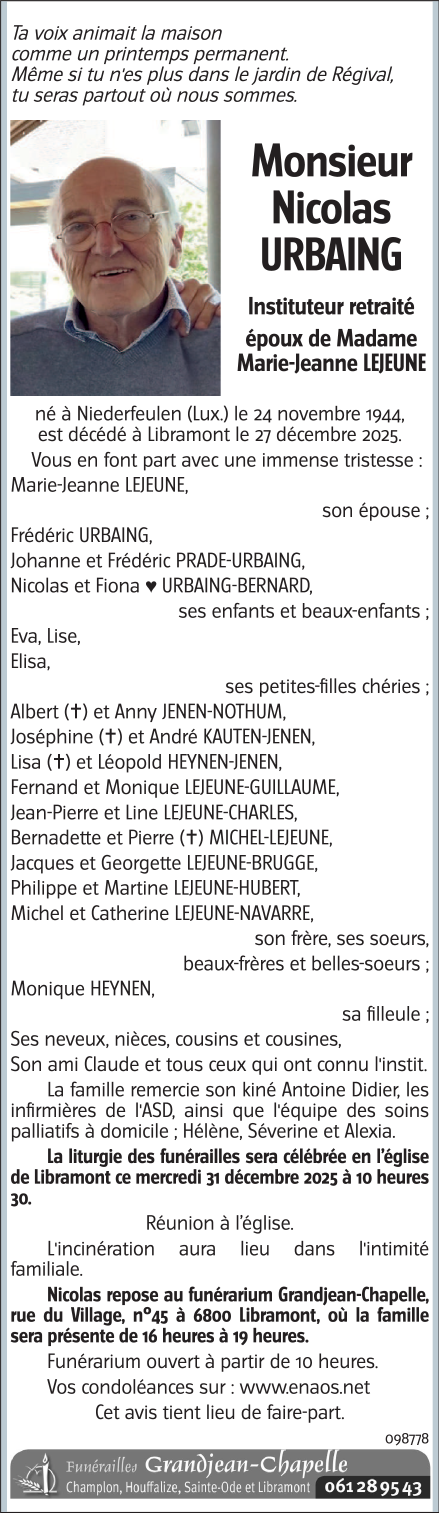 Fallecido en Saint-Pierre (6800, Bélgica) el sábado, 27 de diciembre de 2025 a la edad de 81 años