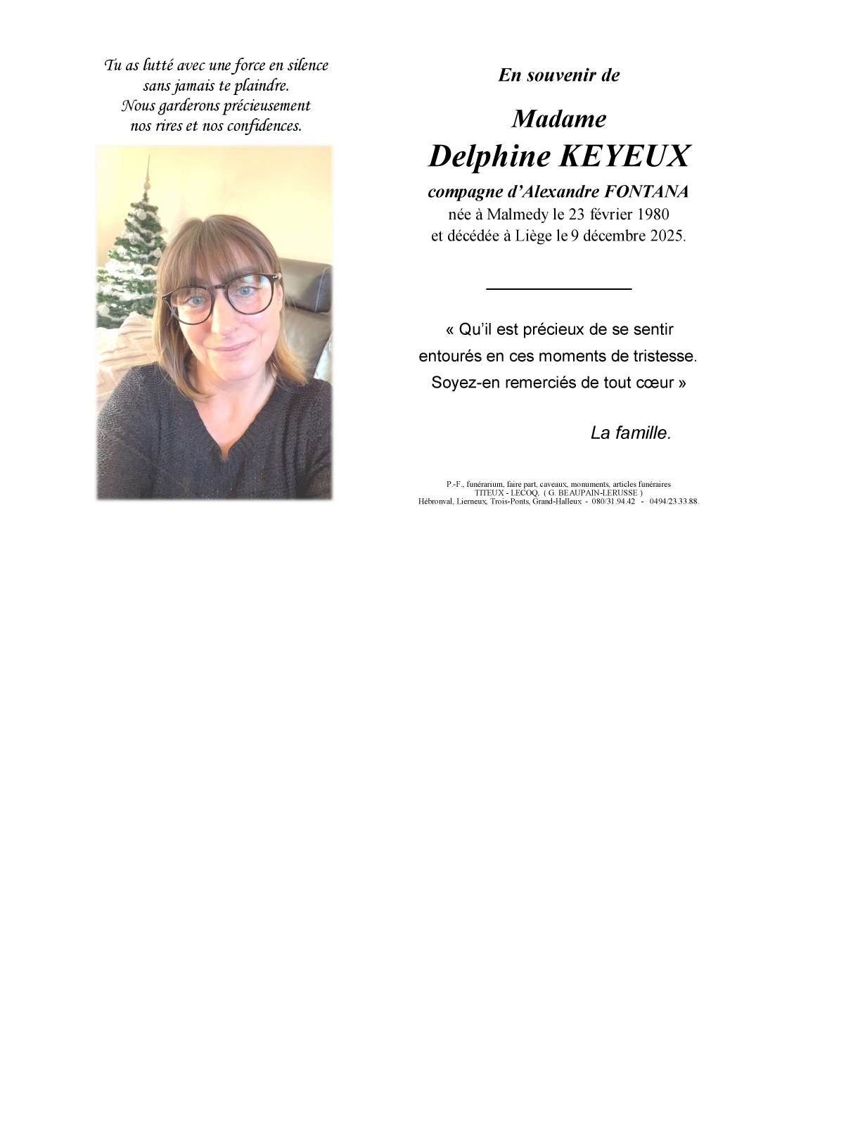 Fallecida en Liège (4000, Bélgica) el martes, 9 de diciembre de 2025 a la edad de 45 años