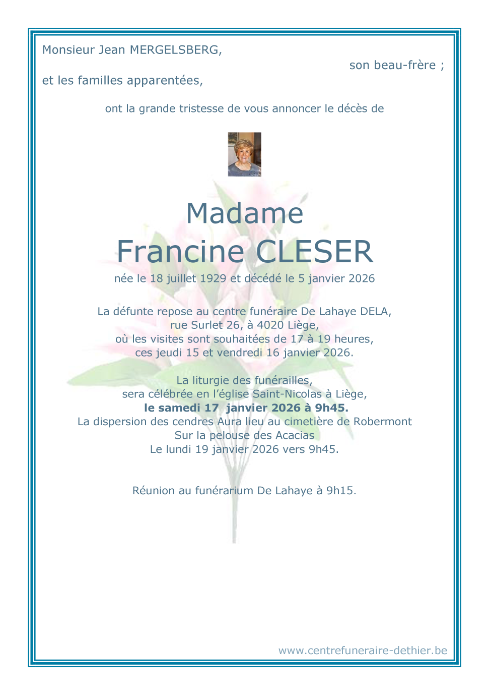 Fallecida en Chênée (4032, Bélgica) el viernes, 16 de enero de 2026 a la edad de 96 años
