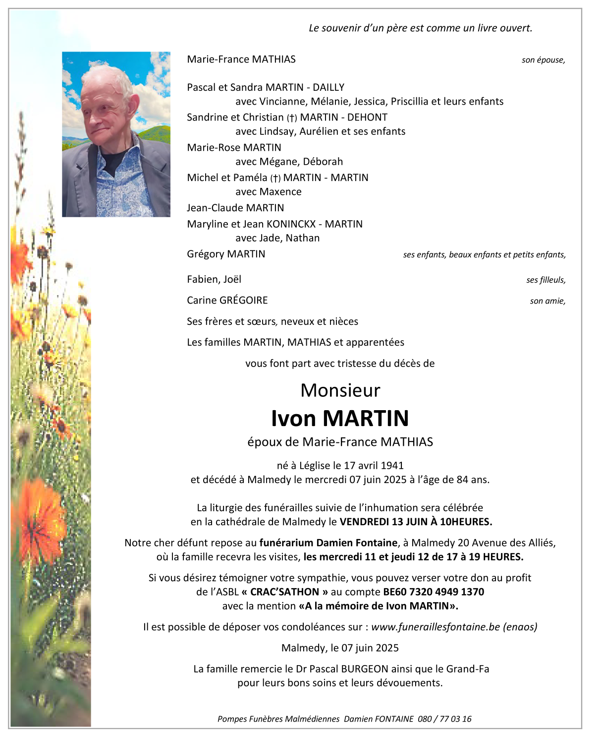 Fallecido en Malmedy (4960, Bélgica) el sábado, 7 de junio de 2025 a la edad de 84 años