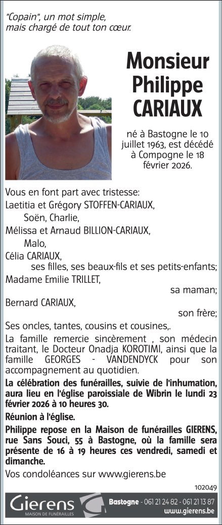 Died in Bertogne (6687, Belgium) on 18 February 2026 at the age of 62 years
