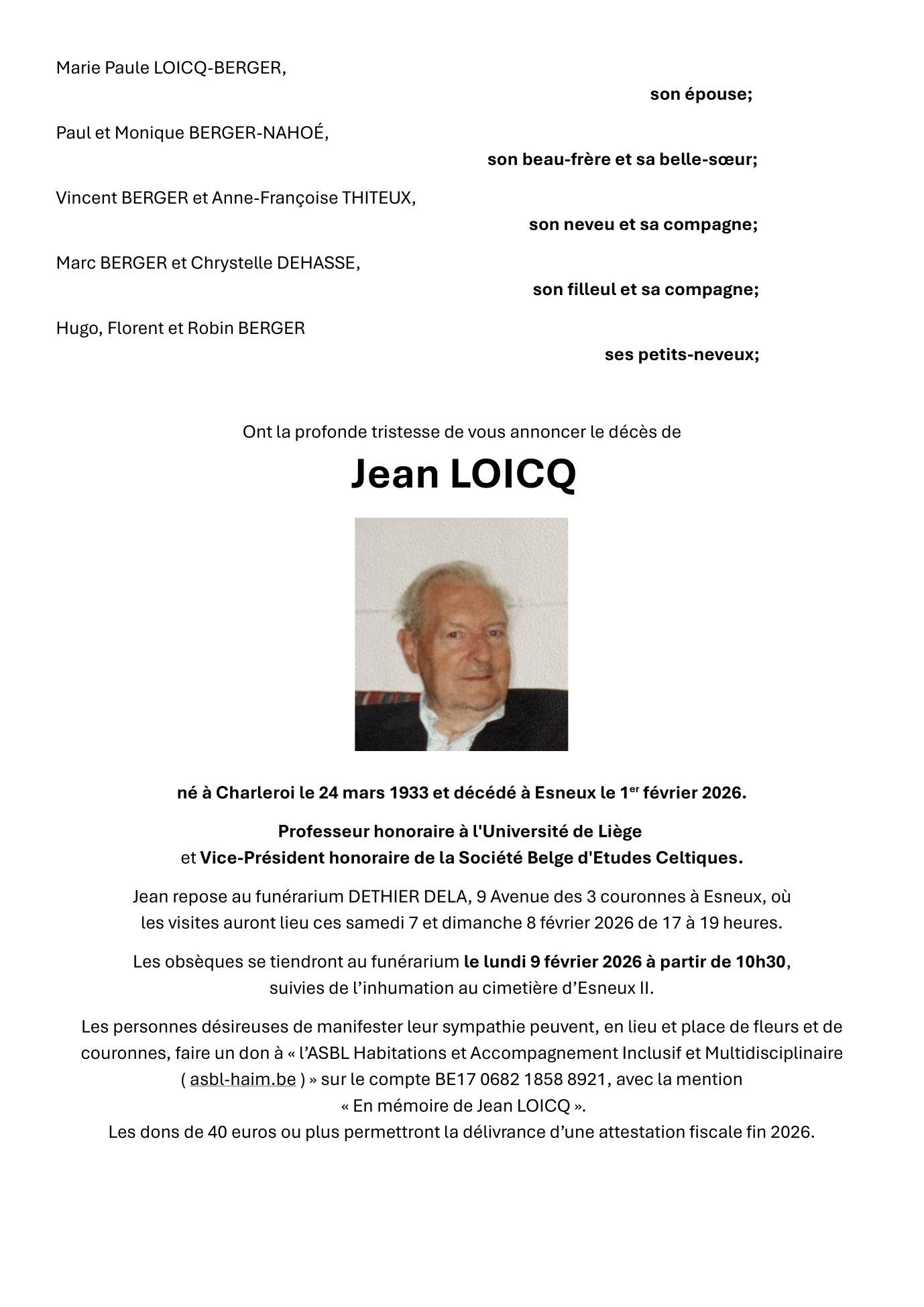 Décédé à Esneux (4130, Belgique) le dimanche 1 février 2026 à l'âge de 92 ans