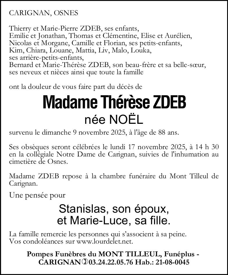 Madame Thérèse ZDEB geboren NOËL