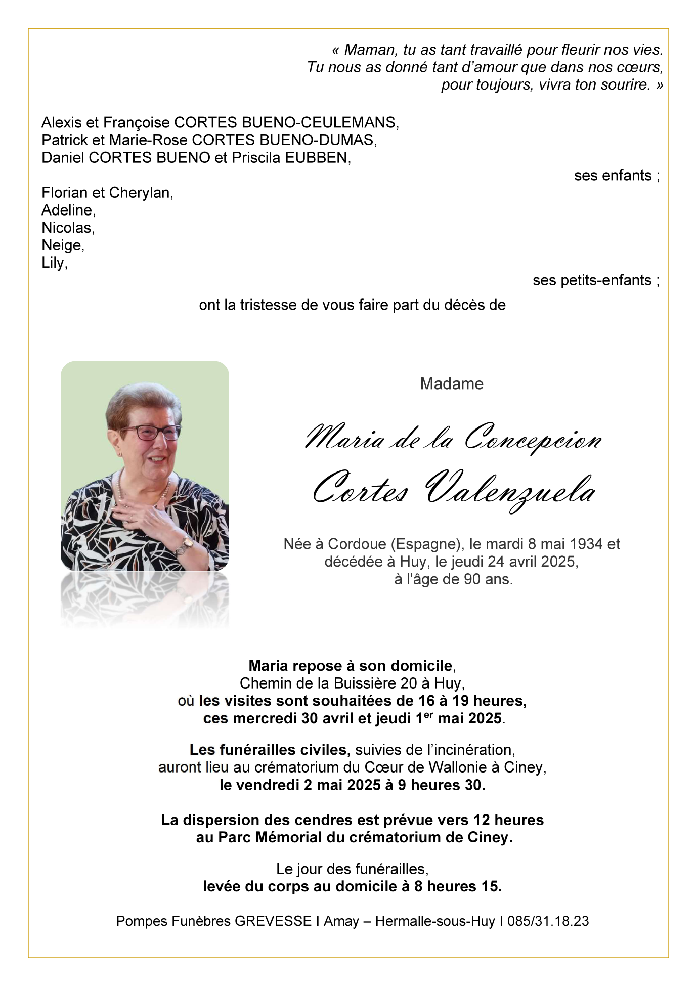 Died in Huy (4500, Belgium) on 24 April 2025 at the age of 90 years