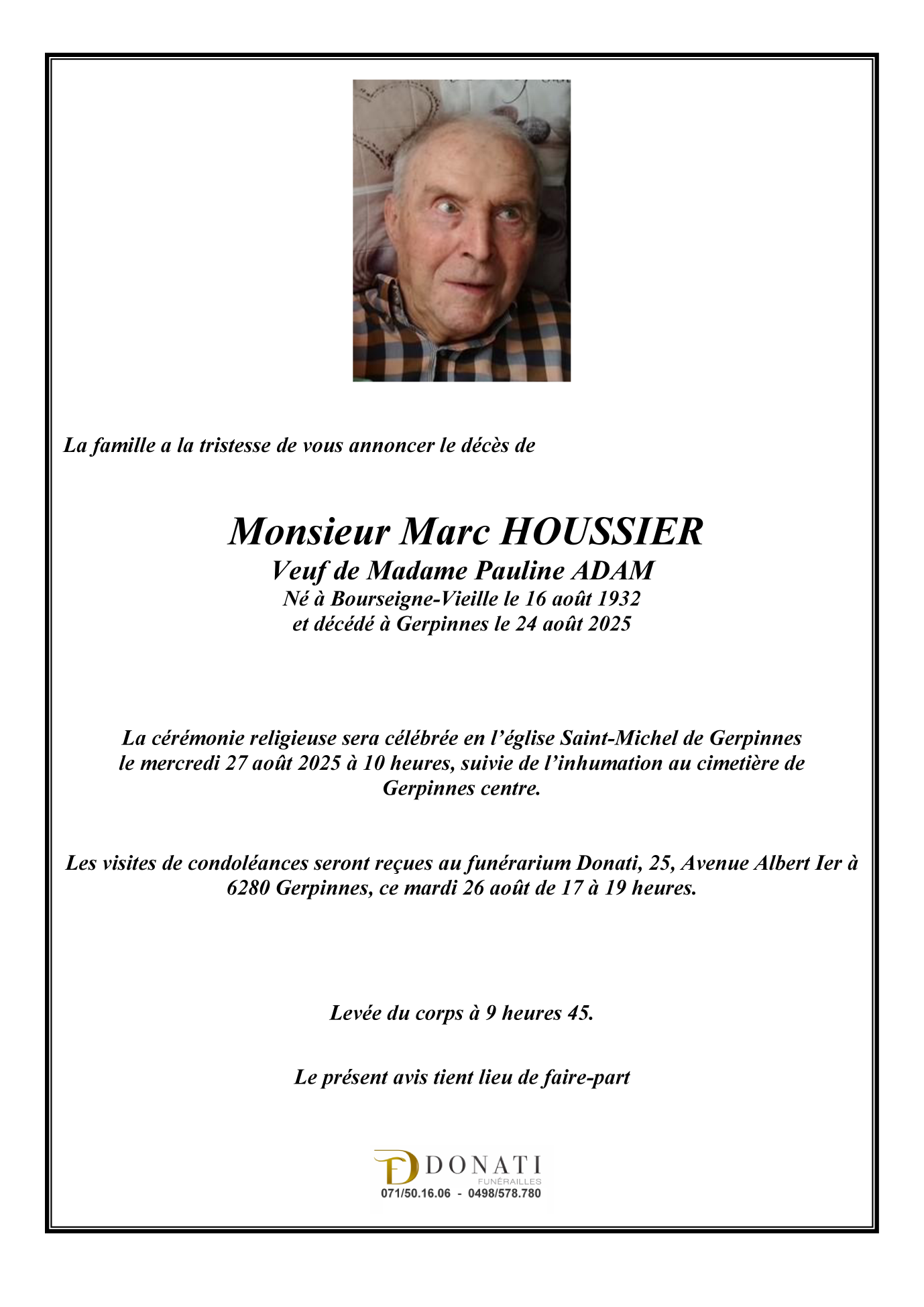 Fallecido en Gerpinnes (6280, Bélgica) el domingo, 24 de agosto de 2025 a la edad de 93 años
