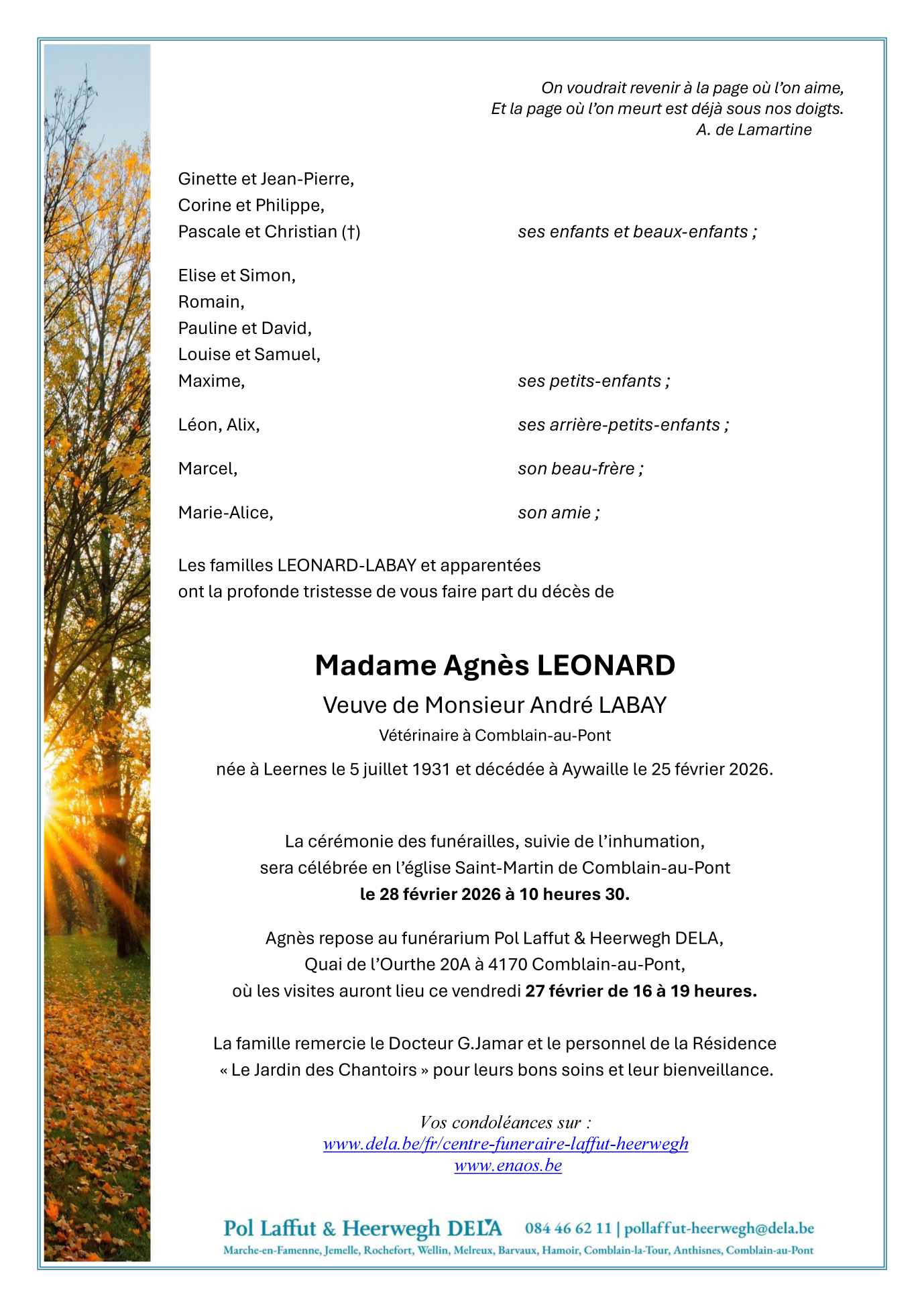 Fallecida en Aywaille (4920, Bélgica) el miércoles, 25 de febrero de 2026 a la edad de 94 años