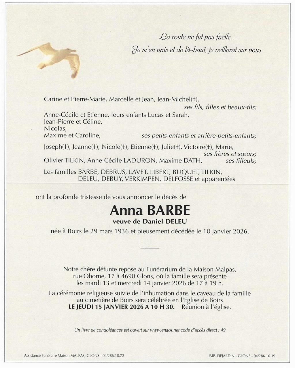 Décédée à Hermalle-sous-Argenteau (4681, Belgique) le samedi 10 janvier 2026 à l'âge de 89 ans