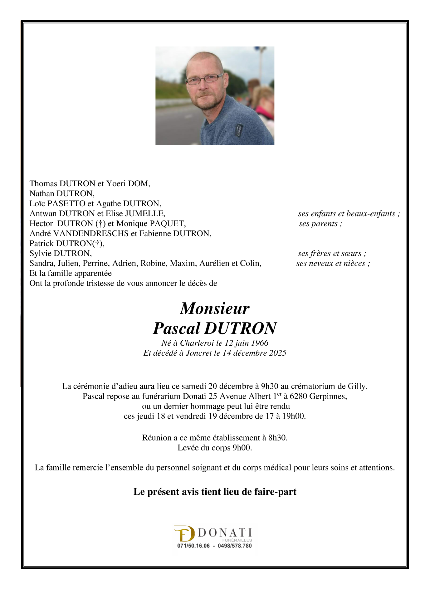 Overleden te Joncret (6280, België) op zondag 14 december 2025 op 59-jarige leeftijd