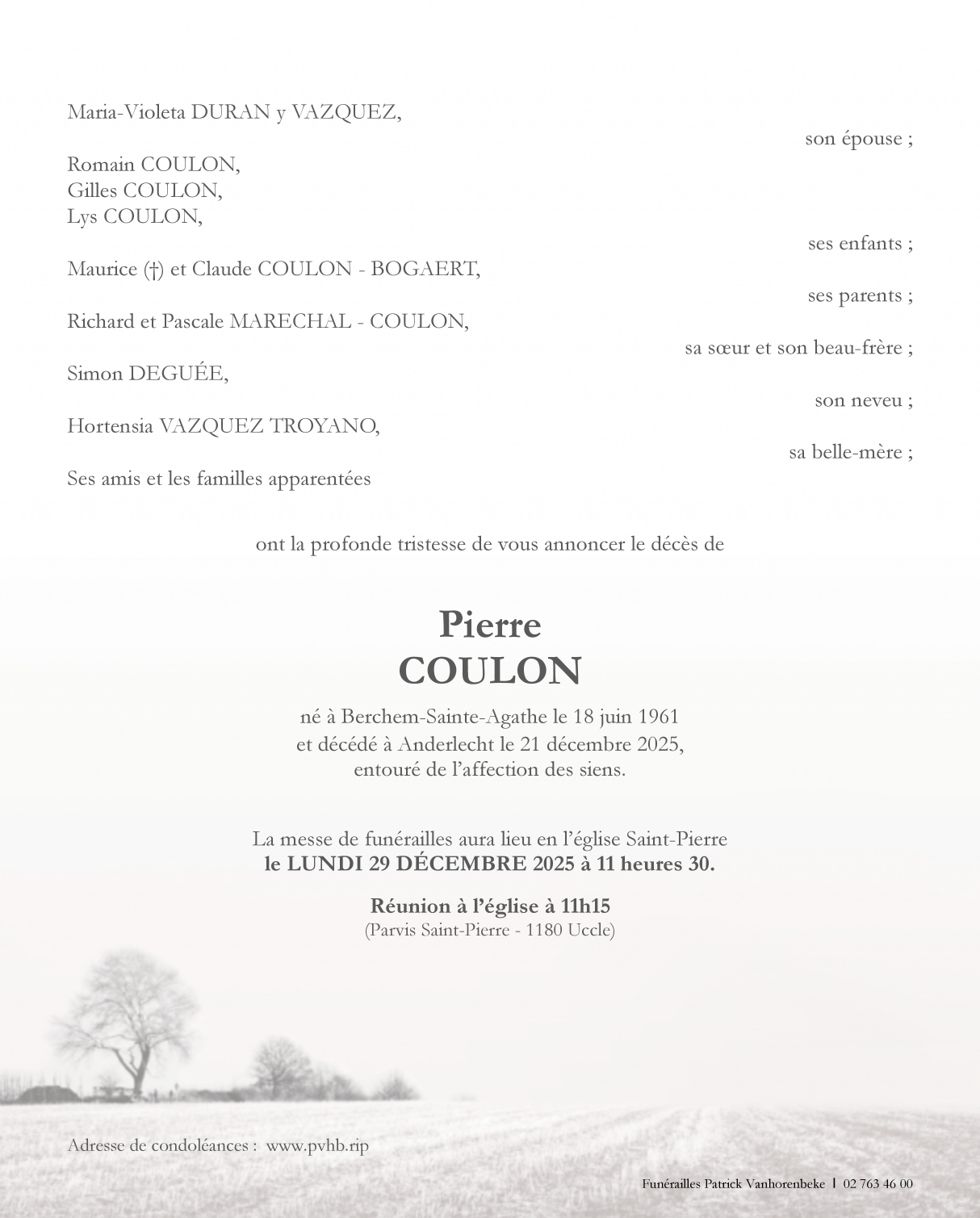 Fallecido en Anderlecht (1070, Bélgica) el domingo, 21 de diciembre de 2025 a la edad de 64 años