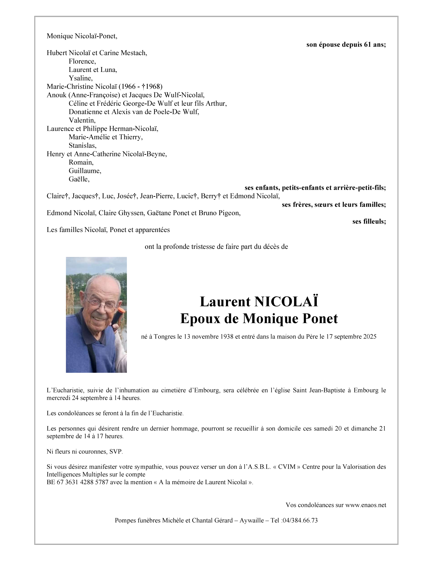 Died in Embourg (4053, Belgium) on 17 September 2025 at the age of 86 years