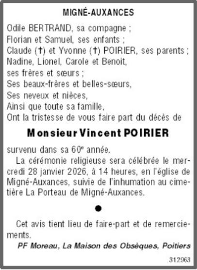 Died in Migné-Auxances (86440, France) on 13 January 2026 at the age of 59 years