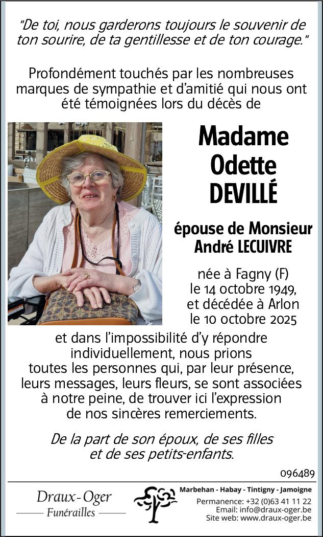 Madame Odette DEVILLÉ